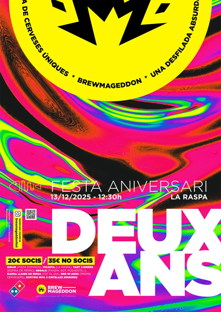 Agafa’t la copa, que enguany la liem grossa! El Brewmageddon celebra dos anys de bogeria cervesera i torna a La Raspa amb una gala que farà història: la Festa d’Aniversari i els BRE-W-ARDS 2025. Una jornada per brindar, riure i recordar tot el que hem fet junts… i el que encara ens queda per fer!